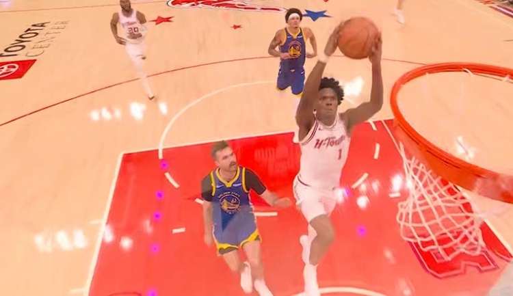 火箭初次跳动!阿门底角三分球&抢断反击个东说念主连拿五分反超骁雄体育录像/图片